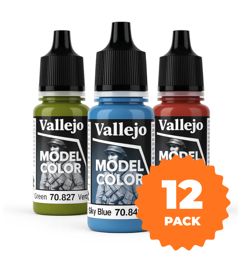 El Pack 12 Model Color Vallejo es la forma más rápida y económica de reunir los tonos que realmente usas. Elige 12 pinturas de la gama Model Color, activa el descuento del pack y pinta tus maquetas y figuras con una paleta coherente, lista para bases, luces y envejecidos en un solo pedido.